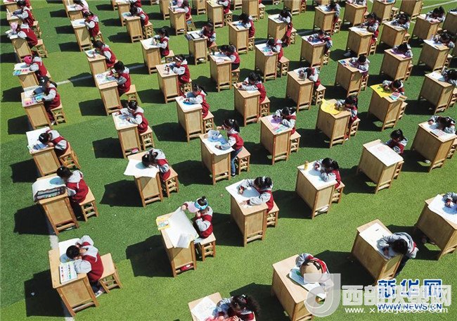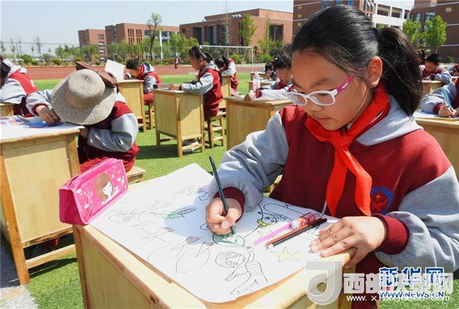 4月19日,安徽省合肥市蜀山區(qū)井崗鎮(zhèn)新城小學(xué)學(xué)生參加“善待地球,童繪藍(lán)天——我與地球的故事”繪畫活動(dòng)。新華社發(fā)(葛宜年 攝)