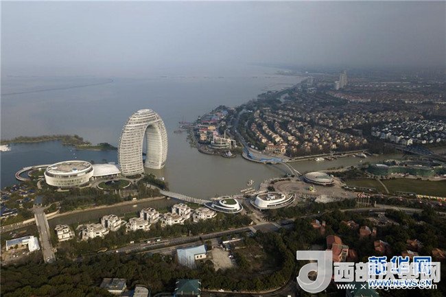 俯瞰浙江湖州太湖旅游度假區(qū)(3月21日無人機拍攝)。
