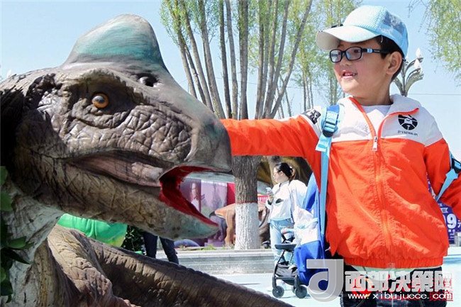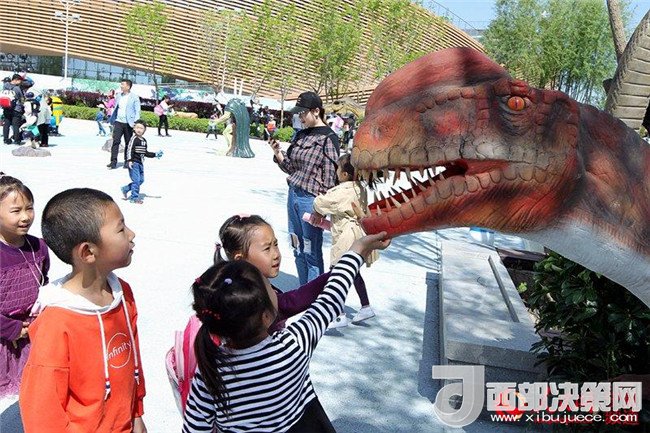 今天,神秘恐龍展在中國花卉博覽園啟幕。花博園里的大型侏羅紀恐龍展,仿若好萊塢電影里的侏羅世界,飛龍、霸王龍、三角龍……這些真實還原的仿真恐龍造型各異,吸引廣大銀川市民前來觀賞。(實習(xí)生 海東)