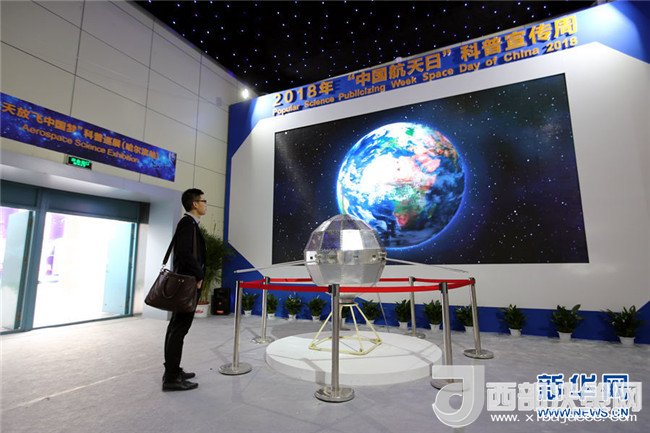 一位航天愛好者在駐足觀看。新華網才萌攝