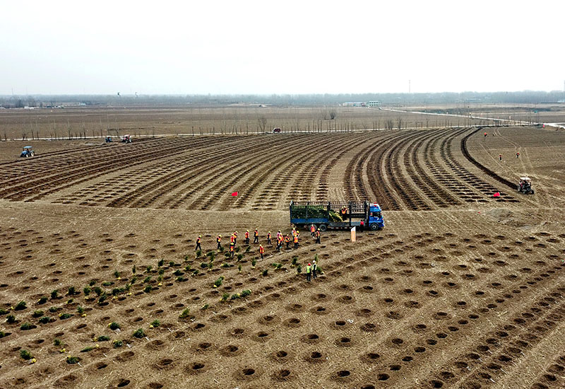 在雄縣昝崗鎮(zhèn)東河崗村平整農(nóng)田里,一排排新栽植的云杉、松樹等挺拔屹立,沐浴春光茁壯生長。這里是新區(qū)先期開展建設(shè)的“千年秀林”的一部分。