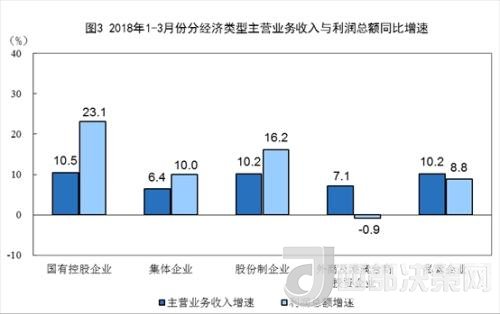 統(tǒng)計(jì)局?jǐn)?shù)據(jù)顯示,1-3月份,規(guī)模以上工業(yè)企業(yè)中,國有控股企業(yè)實(shí)現(xiàn)利潤總額4762.9億元,同比增長23.1%;集體企業(yè)實(shí)現(xiàn)利潤總額57.3億元,增長10%;股份制企業(yè)實(shí)現(xiàn)利潤總額10889.3億元,增長16.2%;外商及港澳臺商投資企業(yè)實(shí)現(xiàn)利潤總額3738億元,下降0.9%;私營企業(yè)實(shí)現(xiàn)利潤總額4316.8億元,增長8.8%。