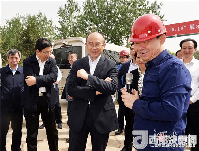 5月1日,省長許勤到廊坊市就2018年中國·廊坊國際經(jīng)濟(jì)貿(mào)易洽談會(huì)籌備情況進(jìn)行調(diào)研。這是許勤實(shí)地查看廊坊國際會(huì)展中心、京津冀大數(shù)據(jù)創(chuàng)新應(yīng)用中心、絲綢之路國際文化交流中心等經(jīng)洽會(huì)重點(diǎn)場(chǎng)館建設(shè)和準(zhǔn)備情況。記者張昊孟宇光攝
