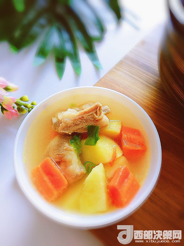 2.土豆胡蘿卜切塊,蔥葉切碎