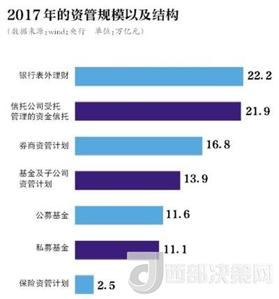 央行數(shù)據(jù)顯示,近年來(lái),我國(guó)金融機(jī)構(gòu)資管業(yè)務(wù)規(guī)模不斷攀升,截至2017年末,不考慮交叉持有因素,總規(guī)模已達(dá)百萬(wàn)億元。其中,銀行表外理財(cái)產(chǎn)品資金余額為22.2萬(wàn)億元,信托公司受托管理的資金信托余額為21.9萬(wàn)億元。同時(shí),互聯(lián)網(wǎng)企業(yè)、各類投資顧問(wèn)公司等非金融機(jī)構(gòu)開(kāi)展資管業(yè)務(wù)也十分活躍。