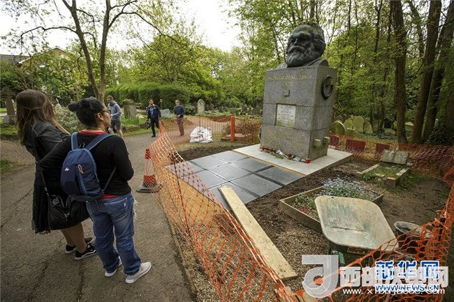 歷史長河奔流不息,真理之光穿越時(shí)空。1818年5月5日,德國小城特里爾,一代偉人馬克思誕生。200年后,世界東方。高擎馬克思主義的精神火炬,在習(xí)近平新時(shí)代中國特色社會主義思想指引下,中國共產(chǎn)黨正領(lǐng)導(dǎo)億萬人民書寫人類發(fā)展史上新的奇跡。這是2018年5月3日,在英國倫敦北部海格特公墓,人們來到正在進(jìn)行維修的馬克思墓前參觀。新華社發(fā)(蒂姆·愛爾蘭攝)
