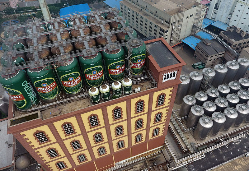 這是無人機拍攝的青島啤酒廠(2017年8月10日攝)。新華社記者 朱崢 攝