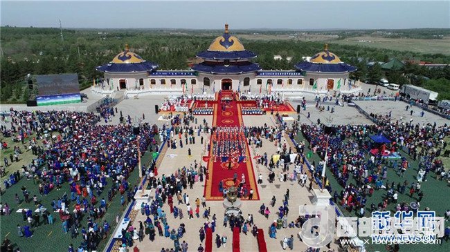 這是成吉思汗陵春季大祭現(xiàn)場(5月6日無人機(jī)拍攝)。新華社記者 達(dá)日罕 攝