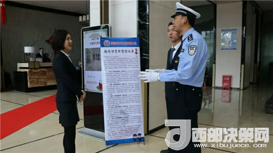 西部決策網(wǎng)——西部大開發(fā)訊(帥華鋒 通訊員 馬存福 漆小燕)酒后駕車害人深,酒前宣傳可預(yù)防。為進(jìn)一步倡導(dǎo)文明、安全行車,培養(yǎng)駕駛?cè)肆己玫鸟{駛習(xí)慣,最大限度的預(yù)防和減少酒后駕駛交通違法行為,營造“拒絕酒后駕駛”濃厚的宣傳氛圍。近日,甘肅天水公安交警部門結(jié)合全省正在開展的“三反一查”綜合治理以及“七個(gè)一律”工作安排,在轄區(qū)酒店、賓館投放“拒絕酒駕”宣傳立式海報(bào)、溫馨提示卡,將酒駕的危害、法律法規(guī)宣傳前移到了就餐前,讓市民在餐桌上筑起一道法律安全防線。