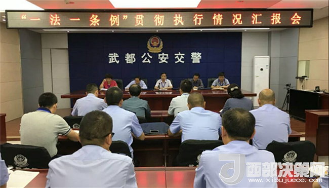 西部決策網(wǎng)——西部大開(kāi)發(fā)訊 (帥華鋒 通訊員 馬存福 郭文靜) 5月25日,甘肅隴南市武都區(qū)人大常委會(huì)執(zhí)法檢查組帶領(lǐng)交通局、運(yùn)管局、綜合執(zhí)法局、安監(jiān)局等部門負(fù)責(zé)人,深入武都區(qū)公安局交警大隊(duì)督導(dǎo)檢查《中華人民共和國(guó)道路交通安全法》和《甘肅省道路交通安全條例》(以下簡(jiǎn)稱“一法一條例”)貫徹實(shí)施情況,大隊(duì)班子成員陪同檢查。