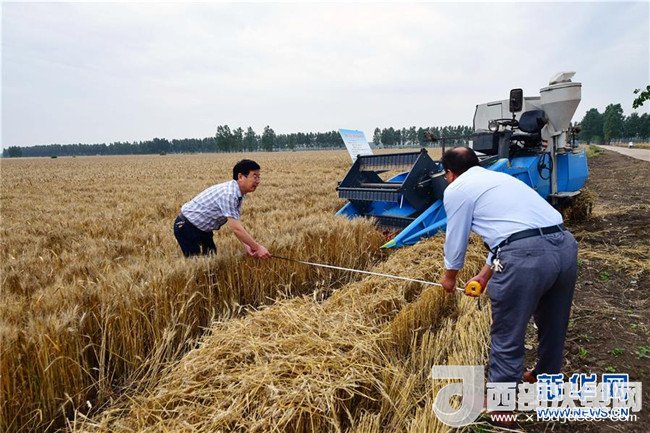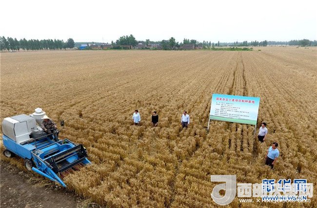當日,在河南省鄧州市腰店鎮(zhèn)國家雜交小麥項目制種基地,專家組對小麥進行田間隨機多點取樣調查,收割機對小麥進行實打實收。測產(chǎn)數(shù)據(jù)表明,雜交小麥種子生產(chǎn)在豐產(chǎn)性、抗逆性、抗病性、適應性等方面表現(xiàn)優(yōu)異,標志著我國雜交小麥研發(fā)進入大田應用和產(chǎn)業(yè)化階段。新華社記者 馮大鵬 攝
