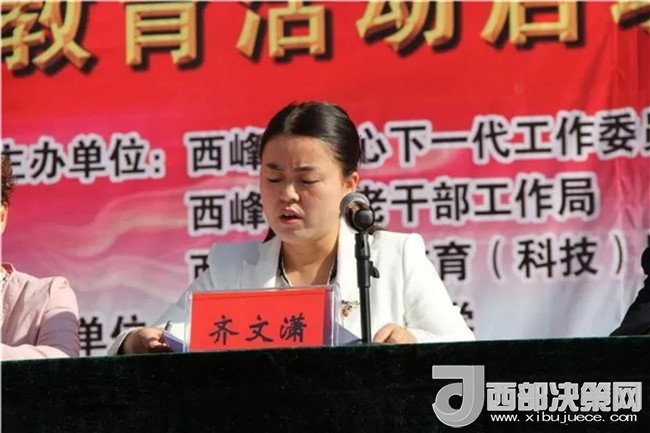 啟動(dòng)儀式由西峰區(qū)人民政府副區(qū)長、關(guān)工委副主任齊文瀟主持,并作“傳承紅色基因,爭做時(shí)代新人”主題教育動(dòng)員講話。她指出,開展“傳承紅色基因,爭做時(shí)代新人”主題教育活動(dòng),是為貫徹落實(shí)習(xí)近平新時(shí)代中國特色社會(huì)主義思想對關(guān)心下一代工作提出的新要求作出的重大部署和安排,主要目的在于引導(dǎo)廣大青少年認(rèn)清自己的“根”和“魂”,教育引導(dǎo)廣大青少年從紅色基因中汲取道德滋養(yǎng)和文化精髓,自覺踐行社會(huì)主義核心價(jià)值觀,堅(jiān)定理想信念,為實(shí)現(xiàn)偉大復(fù)興的中國夢做出應(yīng)有的貢獻(xiàn)。