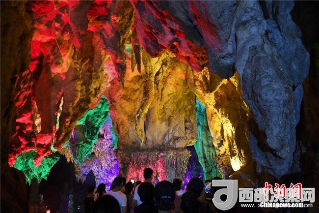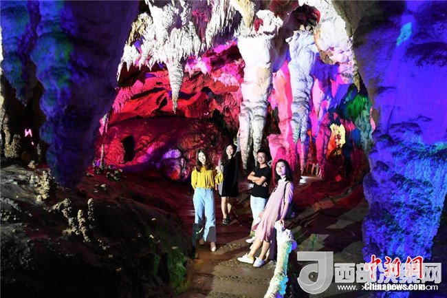 6月3日,記者走進(jìn)廣西百色市德??h國(guó)家4A級(jí)景區(qū)吉星巖探訪,巖洞內(nèi)大小鐘乳石鱗次櫛比,令人嘆奇。 中新社記者 陳文 攝