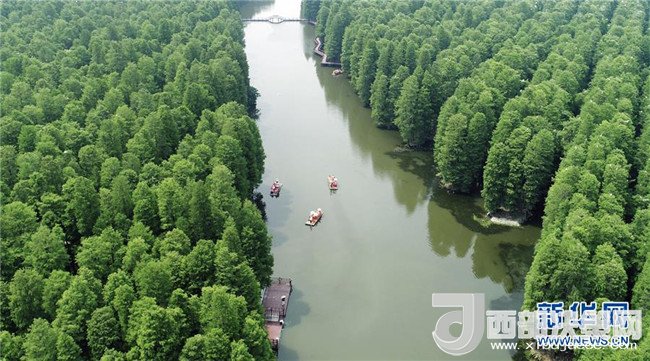 夏日時(shí)節(jié),位于江蘇省興化市李中鎮(zhèn)的水上森林公園滿目蒼翠,綠意撲面。水杉、池杉等樹木構(gòu)成了一幅幅夏日畫卷,吸引不少游客前往游覽。