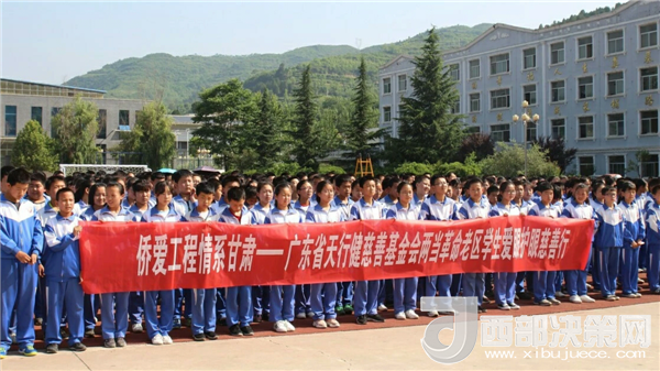西部決策網(wǎng)——西部大開發(fā)訊(帥華鋒 通訊員 馬存福 漆小燕)2018年6月6日,第二十三個(gè)“全國(guó)愛眼日”當(dāng)天, “僑愛工程 情系甘肅”——廣東省天行健慈善基金會(huì)兩當(dāng)革命老區(qū)學(xué)生愛眼護(hù)眼慈善行啟動(dòng)儀式在隴南市兩當(dāng)縣香泉中學(xué)隆重舉行。國(guó)務(wù)院僑務(wù)辦公室國(guó)內(nèi)司張凌處長(zhǎng)、國(guó)務(wù)院僑務(wù)辦公室文化司李永清副處長(zhǎng),國(guó)務(wù)院僑務(wù)辦公室國(guó)內(nèi)司鄒傳彪副處長(zhǎng),甘肅省僑辦僑務(wù)工作處尹清敏處長(zhǎng),隴南市政府副秘書長(zhǎng)、市外僑辦主任馮虎明,隴南市衛(wèi)計(jì)委副主任孫旭東,兩當(dāng)縣人民政府副縣長(zhǎng)陳矛木,中山大學(xué)中山眼科中心王德才教授,中山大學(xué)中山眼科中心陳林興醫(yī)生,廣東省天行健慈善基金會(huì)創(chuàng)會(huì)會(huì)長(zhǎng)蔡光等領(lǐng)導(dǎo)及香泉中學(xué)全校師生800余人出席了本次啟動(dòng)儀式。