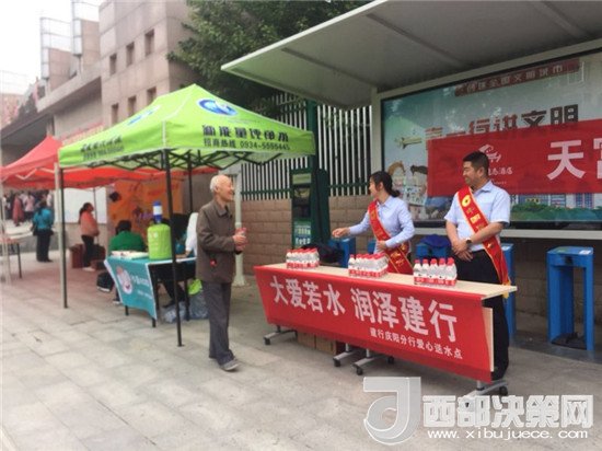西部決策網(wǎng)——西部大開(kāi)發(fā)訊(帥華鋒 通訊員 齊彩云 嵇祥)6月7日,建行慶陽(yáng)分行組織員工,在這個(gè)特別的日子開(kāi)展了“大愛(ài)若水,潤(rùn)澤建行”助力高考學(xué)子活動(dòng),在高考期間,考生及家長(zhǎng)可在我行設(shè)立的補(bǔ)水站處憑準(zhǔn)考證領(lǐng)取1瓶礦泉水,為寒窗苦讀的學(xué)子與焦急等待的家長(zhǎng)送去了關(guān)懷。