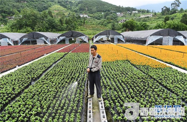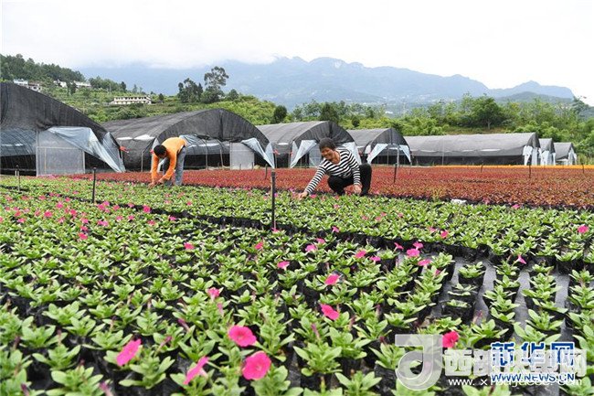 6月12日,艷山紅村村民在村里的花卉基地勞作。近年來,重慶市武隆區(qū)羊角鎮(zhèn)艷山紅村探索“公司+村集體+農(nóng)戶+基地”的經(jīng)營(yíng)模式,發(fā)展花卉種植等產(chǎn)業(yè),實(shí)現(xiàn)了“農(nóng)村資源變資產(chǎn)、資金變股金、農(nóng)民變股東”,幫助當(dāng)?shù)剞r(nóng)民通過保底分紅、效益分紅、務(wù)工收益等方式脫貧增收。新華社記者王全超攝