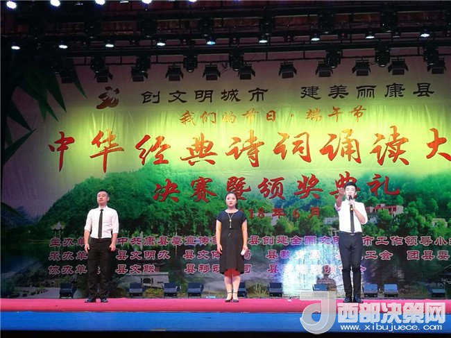 西部決策網(wǎng)——西部大開發(fā)訊(帥華鋒 通訊員 張存益 杜寧生)為紀(jì)念愛國詩人屈原,進(jìn)一步弘揚(yáng)傳承中華民族優(yōu)秀傳統(tǒng)文化,豐富全縣人民群眾的文化生活,助推全國文明城市創(chuàng)建,6月12日,甘肅康縣舉行以“創(chuàng)建文明城市,共建美麗康縣”為主題的“我們的節(jié)日·端午節(jié)”中華經(jīng)典詩詞誦讀大賽決賽暨頒獎(jiǎng)典禮??悼h四大班子領(lǐng)導(dǎo)和1000余名觀眾一同觀看了決賽盛況和精彩對(duì)決。
