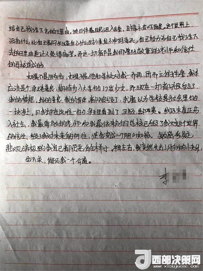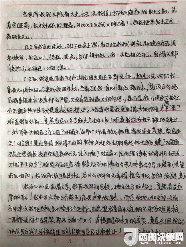 在與李某奕父親了解的過(guò)程中得知,雖然父母離異但并未影響她的學(xué)習(xí),不像網(wǎng)友猜測(cè),她是因?yàn)楦改鸽x異患抑郁癥的。李某奕在校學(xué)習(xí)期間(事發(fā)之前)非??炭?,她一直夢(mèng)想報(bào)考新聞傳媒專(zhuān)業(yè),且經(jīng)常參加學(xué)校的各種活動(dòng)并擔(dān)任主持人。但一切就從班主任吳某厚的獸行之后開(kāi)始改變了。從患病開(kāi)始她一直堅(jiān)持要上學(xué),但由于吃藥的緣故她不能正常的上課,加之長(zhǎng)期的治療也落下不少功課,最后由于身體和心理原因,她感覺(jué)力不從心。中途三次試圖吃大量鎮(zhèn)定類(lèi)、抑郁類(lèi)藥物想要結(jié)束自己的生命,都被及時(shí)搶救了下來(lái)。在她的控訴書(shū)中有一段:“明明該像鮮花一樣美好的年齡,我卻不知道為什么人要活著?明明比金銀還寶貝的時(shí)間剩了那么一點(diǎn)點(diǎn),我卻不得不中斷學(xué)習(xí),而是給自己找活下去的理由。終日伴著眼淚入睡,時(shí)常被嚇醒,這個(gè)世界上沒(méi)有什么比自己都不知道自己什么時(shí)候發(fā)神經(jīng)尋死,自己努力為自己找活下去的理由更讓人覺(jué)得痛苦。而這一切都是我那曾經(jīng)的老師和信任的學(xué)校造成的。”從實(shí)際了解和李某奕控訴書(shū)中的描寫(xiě),她整日活在焦慮、恐懼、痛苦之中,這樣的生活離她的大學(xué)夢(mèng)想越來(lái)越遠(yuǎn),直至破滅。
