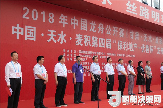 9時(shí)整,2018中國(guó)龍舟公開(kāi)賽(天水麥積站)暨保利地產(chǎn)“伏羲杯”第四季龍舟大賽正式拉開(kāi)序幕,來(lái)自全國(guó)及甘肅省的近25家代表隊(duì)展開(kāi)激烈角逐。中國(guó)龍舟協(xié)會(huì)副主席劉北劍,天水市人大常委會(huì)主任、市委秘書長(zhǎng)蔣曉強(qiáng),天水市人大常委會(huì)原主任、市關(guān)工委主任李世榮,市委常委、常務(wù)副市長(zhǎng)趙四輩,市委常委、宣傳部部長(zhǎng)張建杰,市人大常委會(huì)副主任張克強(qiáng),副市長(zhǎng)、市公安局局長(zhǎng)馬瑛,市政協(xié)副主席屈光平,市政協(xié)副主席、麥積區(qū)委書記張智明,國(guó)家體育總局社會(huì)體育指導(dǎo)中心二部主任、國(guó)際龍舟協(xié)會(huì)副秘書長(zhǎng)、亞洲和中國(guó)龍舟協(xié)會(huì)秘書長(zhǎng)余漢橋,省體育局群眾體育處處長(zhǎng)武志峰,市人大常委會(huì)秘書長(zhǎng)楊坤,市政府副秘書長(zhǎng)、外事僑務(wù)辦主任張有信,麥積區(qū)人大常委會(huì)主任賈應(yīng)珍等出席開(kāi)幕式,并為龍舟點(diǎn)睛。