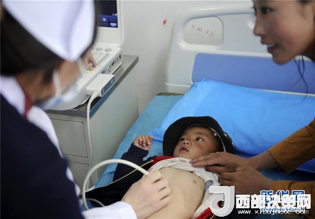 7月11日,在西藏那曲,一名貧困先心病患兒在接受檢查。