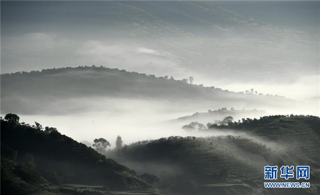近日,寧夏固原市彭陽縣數(shù)十萬畝旱作梯田在曙光中迎來云海景觀,層疊的梯田間云霧繚繞,宛如仙境。據(jù)了解,彭陽縣自1983年建縣以來,始終堅持生態(tài)立縣的理念,積極推進植樹造林事業(yè),全縣林木保存面積由1983年的27萬畝,增長到目前的203.87萬畝,森林覆蓋率達到27.5%。記者王鵬攝