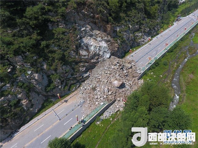 這是五臺(tái)山景區(qū)大甘河橋一側(cè)的山體崩塌現(xiàn)場(7月21日攝)。受降雨影響,山西五臺(tái)山景區(qū)于7月19日和20日發(fā)生兩起山體崩塌地質(zhì)災(zāi)害,沒有造成人員傷亡和車輛損失。新華社發(fā)(楊晨光攝)