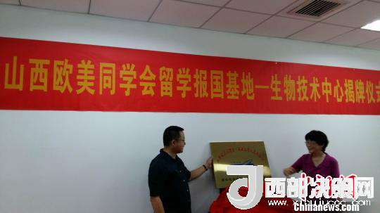 會前,與會人員共同見證了“留學(xué)報國基地—生物技術(shù)中心揭牌儀式”。山西歐美同學(xué)會 供圖
