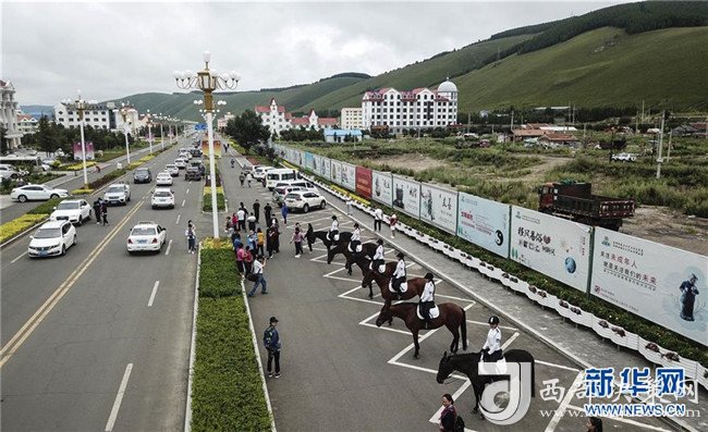 8月5日,阿爾山市執(zhí)法隊員在騎馬巡邏。