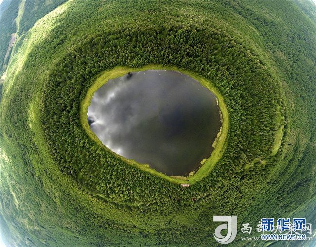 8月5日拍攝的阿爾山天池(無人機全景拍攝)。