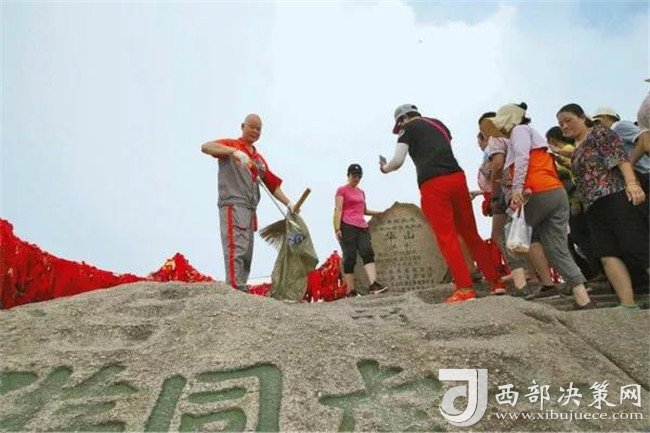 保持環(huán)境衛(wèi)生是一項細(xì)碎繁瑣、費時費力的工作。太陽曬著,地面烤著,閆芳民日復(fù)一日,默默付出,用勤勞的雙手維護(hù)著華山干凈整潔的環(huán)境。正是許許多多和閆芳民一樣的保潔員,以掃帚為筆,以汗水為墨,書寫著自己無怨無悔的堅守,才讓華山如此容光煥發(fā),充滿生機。