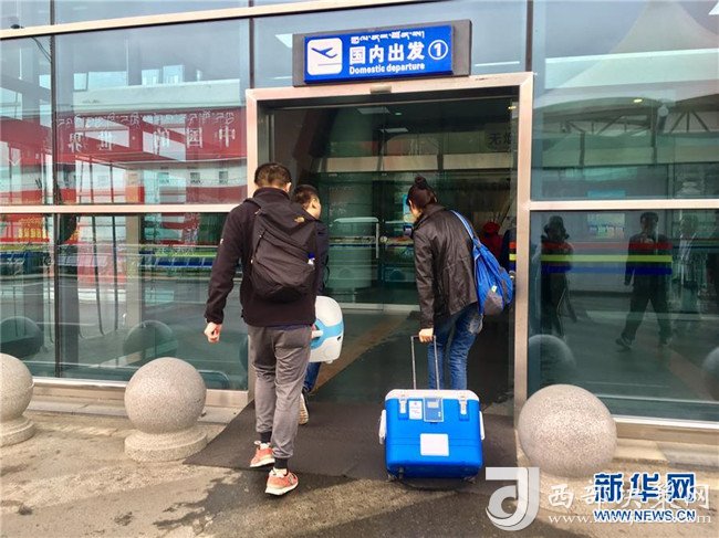 8月22日,在拉薩貢嘎機(jī)場(chǎng),工作人員經(jīng)綠色通道將捐獻(xiàn)的器官送上飛機(jī)。