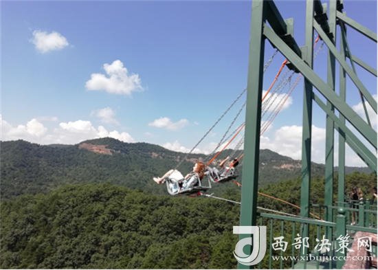 懸崖秋千位于景區(qū)南區(qū),與玻璃觀景臺(tái)相連,高70余米,秋千蕩起,在盡情吶喊的同時(shí),不同視角的獨(dú)特山谷樣貌盡收眼底。