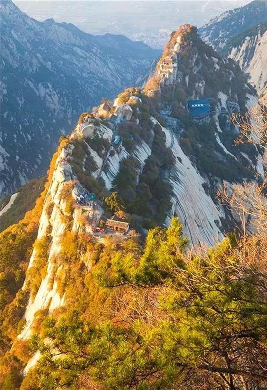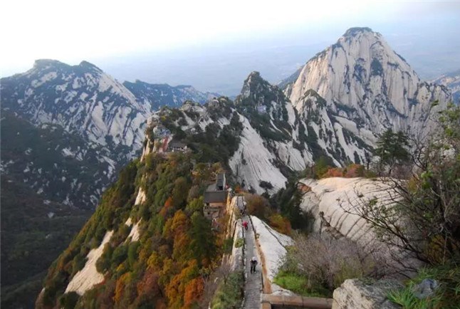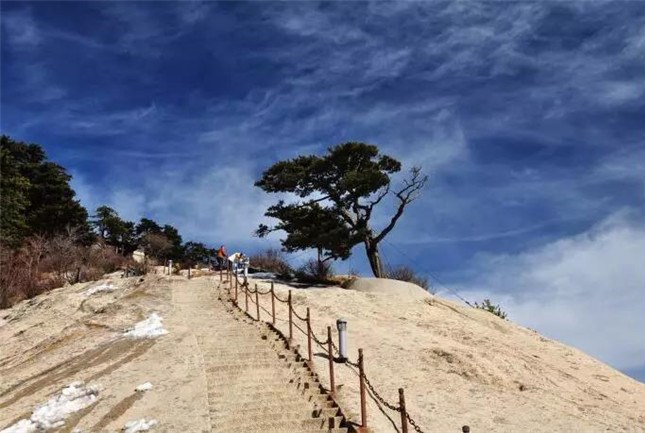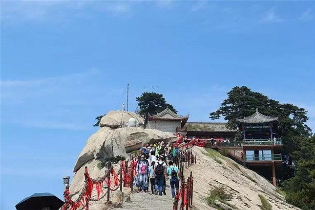 魏晉南北朝時,還沒有通向華山峰頂?shù)牡缆?。直到唐朝,隨著道教興盛,道徒開始居山建觀逐漸在北坡沿溪谷而上開鑿了一條險道,形成了"自古華山一條路"。