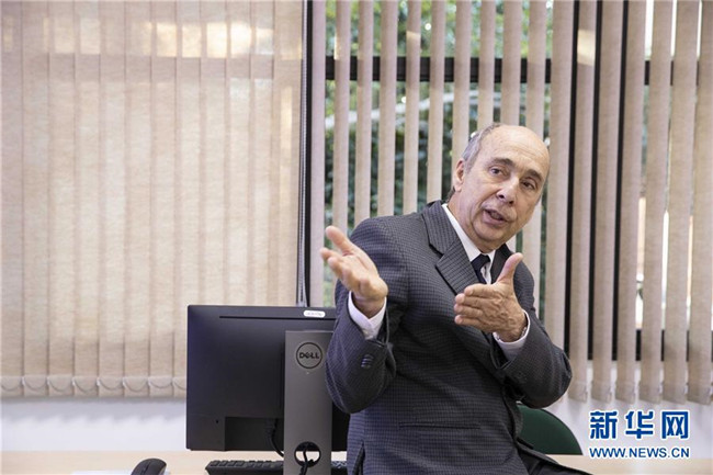 8月30日,在巴西圣若澤杜斯坎普斯,中國-巴西空間天氣聯(lián)合實驗室巴方運營負責人若阿金·科斯塔在介紹實驗室運轉(zhuǎn)情況?!⌒氯A社記者 李明 攝