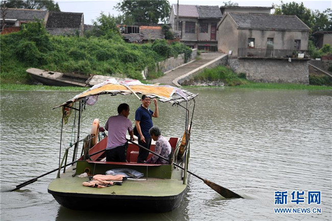 安徽含山縣運漕鎮(zhèn)楊謝小學(xué)河北教學(xué)點教師汪開寬(中)在放學(xué)后乘船到島對面的集市買菜(2017年9月5日攝)。河北教學(xué)點所在的河北自然村四面環(huán)河,島上人口不足100人。30年前,師范學(xué)校畢業(yè)的汪開寬來到這里,開始了自己的教師生涯。近年來,學(xué)生數(shù)量慢慢減少到個位數(shù),其他老師陸續(xù)離開,最后只剩下汪開寬一人。然而為了島上的孩子們不用涉險過河上學(xué),汪開寬依舊選擇了堅守。新華社記者 劉軍喜 攝