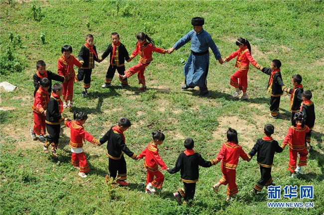 9月5日,貴州畢節(jié)市黔西縣花溪彝族苗族鄉(xiāng)豐坪小學(xué)教師楊朝俊和學(xué)生一起跳民族舞蹈。時至今日,楊朝俊在當?shù)亟虝延?4個年頭,曾孤身一人守著豐坪小學(xué)兩個年級的30余名學(xué)生,照顧他們的學(xué)習和生活。楊朝俊默默堅守的事跡,吸引了一名支教老師前來“搭班”。今年新學(xué)期開學(xué)時,當?shù)亟逃块T又選派了一名年輕的特崗教師來到學(xué)校,分擔教學(xué)工作。新華社發(fā)(楊文斌攝)