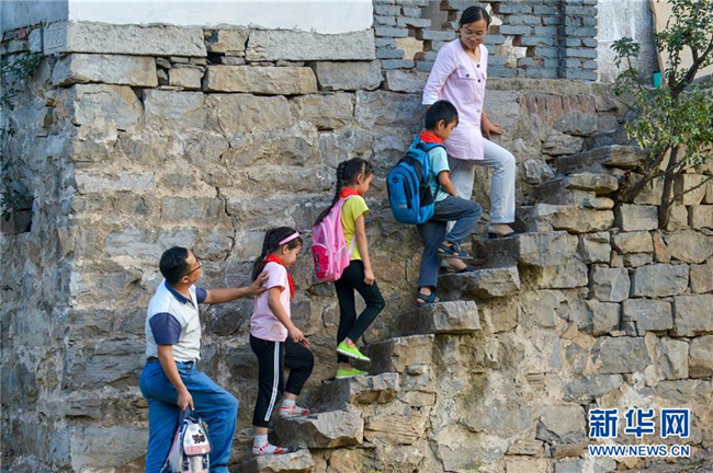 9月7日,在位于太行山東麓的河北省邯鄲市涉縣更樂鎮(zhèn)張家莊村,“80后夫妻”趙文波和秦晶晶一起護送學(xué)生回家。趙文波和秦晶晶均為師范學(xué)校畢業(yè),先后投身當?shù)剞r(nóng)村教育事業(yè)。2000年兩人相識,共同的教育理想讓他們走到了一起。18年來,兩人相愛相守,扎根山區(qū),在三尺講臺上共同堅守。新華社記者 王曉 攝