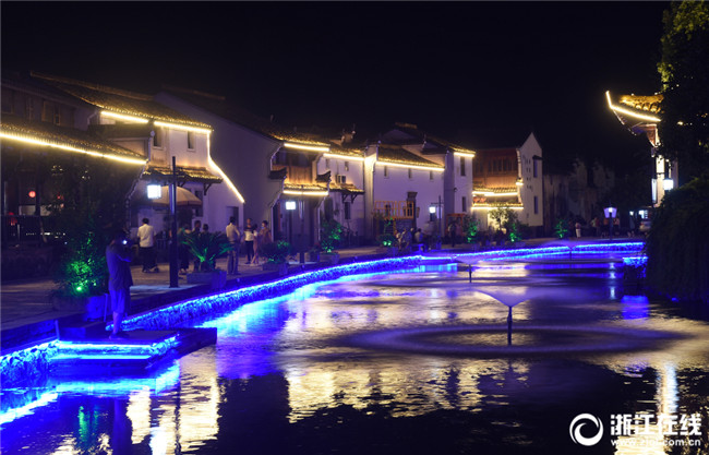 9月10日傍晚,杭州富陽東梓關(guān)村亮燈工程開啟,村里的屋檐走廊被霓虹燈照亮,古村就像一顆夜明珠,璀璨奪目。昔日傳統(tǒng)村落華麗轉(zhuǎn)身,正吸引越來越多的游客前來游玩。(浙江在線記者 吳元峰 攝)