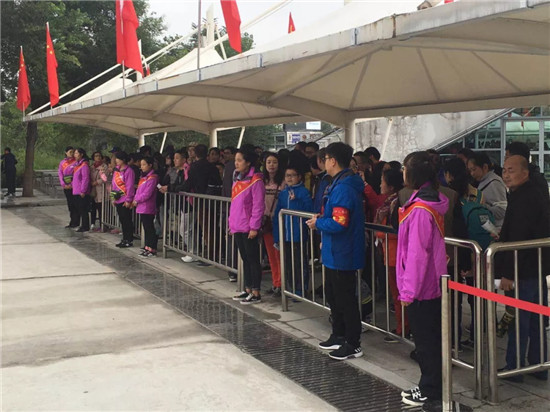 在雙節(jié)來臨前,集團(tuán)在景區(qū)岔路口及游客易聚集區(qū)新增設(shè)多處游覽導(dǎo)示牌,向游客指明各個(gè)方向的旅游景點(diǎn)、區(qū)位及服務(wù)設(shè)施;在節(jié)前對(duì)景區(qū)電子票務(wù)系統(tǒng)進(jìn)行了改造升級(jí),將在國慶假日期間實(shí)現(xiàn)電子門、車票掃碼入園功能;公布景區(qū)400服務(wù)電話(400—0913—777),設(shè)立7部客服熱線,度節(jié)期間24小時(shí)全天開通,確保游客咨詢渠道通暢;設(shè)立6處由各相關(guān)單位共同參與的綜合旅游咨詢投訴臺(tái),強(qiáng)化度節(jié)期間的綜合信息處置能力;通過多渠道提前對(duì)外發(fā)布景區(qū)預(yù)警信息,每兩小時(shí)在景區(qū)LED屏公布索道上站、下站以及售票大廳游客排隊(duì)等候情況,告知游客錯(cuò)峰出行;在游客中心、瓦廟溝、華山門、太華索道下站設(shè)立4個(gè)免費(fèi)供水點(diǎn),解決度節(jié)期間游客數(shù)量劇增后的飲水難題;在游客中心安排文藝演出,進(jìn)一步提升游客的旅游體驗(yàn);在重點(diǎn)區(qū)域共準(zhǔn)備4萬余件雨衣,確保及時(shí)應(yīng)對(duì)景區(qū)降雨天氣;在主峰區(qū)儲(chǔ)備1000件棉衣、100箱方便面、20箱火腿、1000包壓縮餅干、110件水等應(yīng)急物資;在西線索道、東線索道上站備足500人次的應(yīng)急物資,并在索道吊廂內(nèi)配備應(yīng)急箱。此外,集團(tuán)進(jìn)一步對(duì)基礎(chǔ)設(shè)施進(jìn)行了維護(hù)維修,在景區(qū)鎮(zhèn)岳宮、南天門、望河樓、王母宮等關(guān)鍵位置試點(diǎn)的新型生物酶全降解環(huán)保廁所將于9月20日前投入使用,能夠有效實(shí)現(xiàn)景區(qū)廁所“零排放、零污染”。