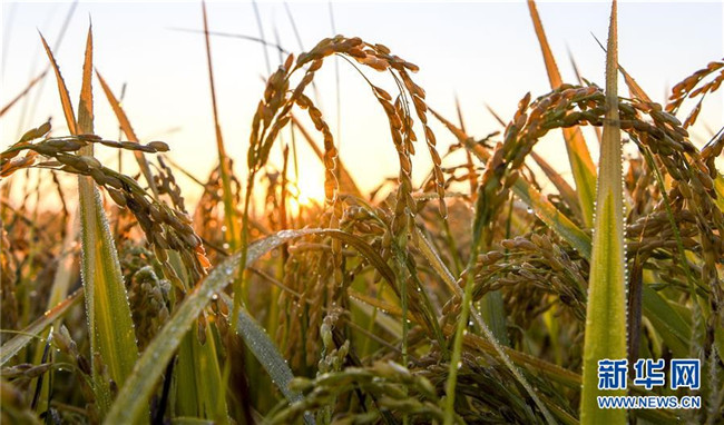 新疆察布查爾錫伯自治縣納達齊牛錄鄉(xiāng)一處待收割的水稻(9月26日攝)。眼下,地處新疆伊犁河谷的察布查爾錫伯自治縣約20萬畝水稻迎來收割季。當?shù)剞r(nóng)民搶抓農(nóng)時,忙碌在金色田園中。記者 胡虎虎 攝
