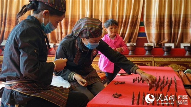 本波日山腳下、薩迦寺旁,一個大院兒里飄出藏香獨特的香味,一進大院,有的在提取制作藏香的原材料、有的在手工制作藏香模型、有的在包裝藏香,這里的藏香大多線上銷售,遠(yuǎn)銷北京、上海、杭州等地,一年銷售額達(dá)到2000多萬元。