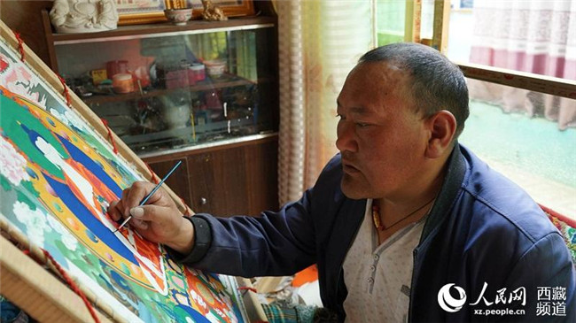 在薩迦縣城寶鋼中路上,民族手工業(yè)合作社店鋪里,45歲的邊巴正在小心擺弄著墻上的唐卡。邊巴說:“咱們薩迦民族手工業(yè)歷史悠久,比如薩迦唐卡和銀器都有千年歷史,泥塑面具也有900多年歷史,希望通過合作社形式讓手工業(yè)能規(guī)模化經(jīng)營,解決一些貧困戶就業(yè)。”(記者鄧建勝 瓊達(dá)卓嘎 )