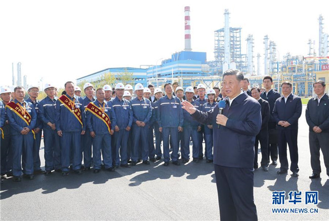 9月25日至28日,中共中央總書記、國家主席、中央軍委主席習(xí)近平在東北三省考察,主持召開深入推進東北振興座談會。這是27日上午,習(xí)近平在遼寧中國石油遼陽石化公司同工人親切交流。 新華社記者 鞠鵬 攝