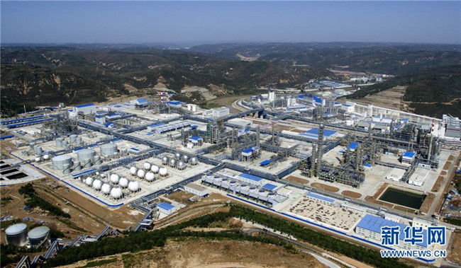 9月28日拍攝的延安煤油氣資源綜合利用項(xiàng)目全景(無(wú)人機(jī)拍攝)。新華社記者 劉瀟 攝