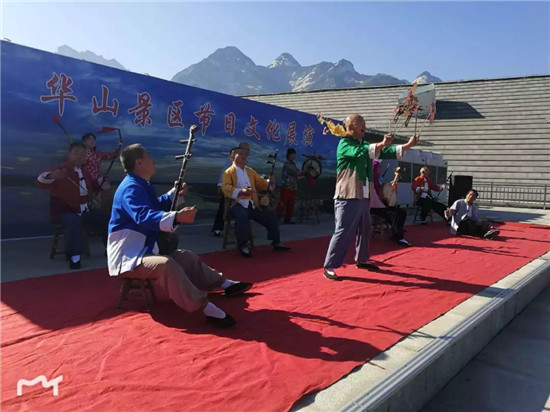 在國慶期間,景區(qū)每天都有老腔表演,他們在現(xiàn)場為游客帶來古老的搖滾樂和皮影表演。
