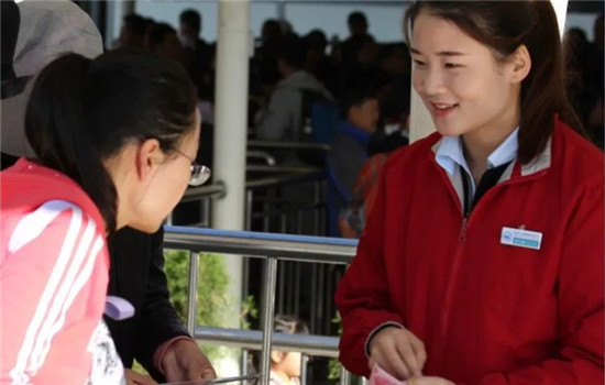 負(fù)責(zé)售票、檢票的工作人員認(rèn)真的核對游客相關(guān)信息,時刻要求自己做到細(xì)致嚴(yán)謹(jǐn)更快速,一天下來,他們幾乎忙得連喝水的時間都沒有,但是他們時刻保持微笑,讓每位游客感受到“服務(wù)至誠”的感覺。