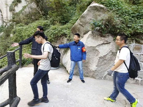 當(dāng)有行動不便的游客游覽時、當(dāng)有游客的手機(jī)丟失時、當(dāng)游客的包掉到懸崖下時,第一時間出現(xiàn)在游客身邊,及時為游客解決困難,此時他們的行動是對游客最舒心的安慰。