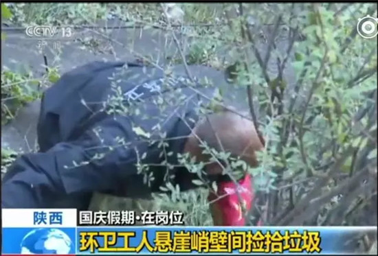 假期期間,隨著游客增多,景區(qū)內(nèi)的垃圾也隨之增多。為了清理游客隨手丟棄在懸崖峭壁間的塑料袋、礦泉水瓶等垃圾,他們需要身系保險繩,冒著危險工作。