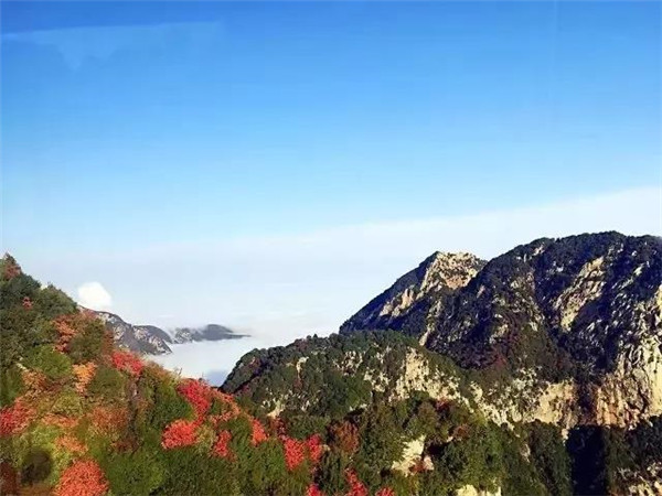 這里的秋天更容易令人迷醉,一步一景步步生情,這里溫度適中,紅葉滿山,山崖為底,松檜為墨,是登山拍攝的最佳季節(jié)。秋風好比一支神奇的彩筆,肆意揮灑,將華山繪成了一幅燦爛的畫卷。從山腳下的郁郁蔥蔥到山頂上的紅黃相間,華山上的每一個臺階都浸染在了紅葉的絢爛中。